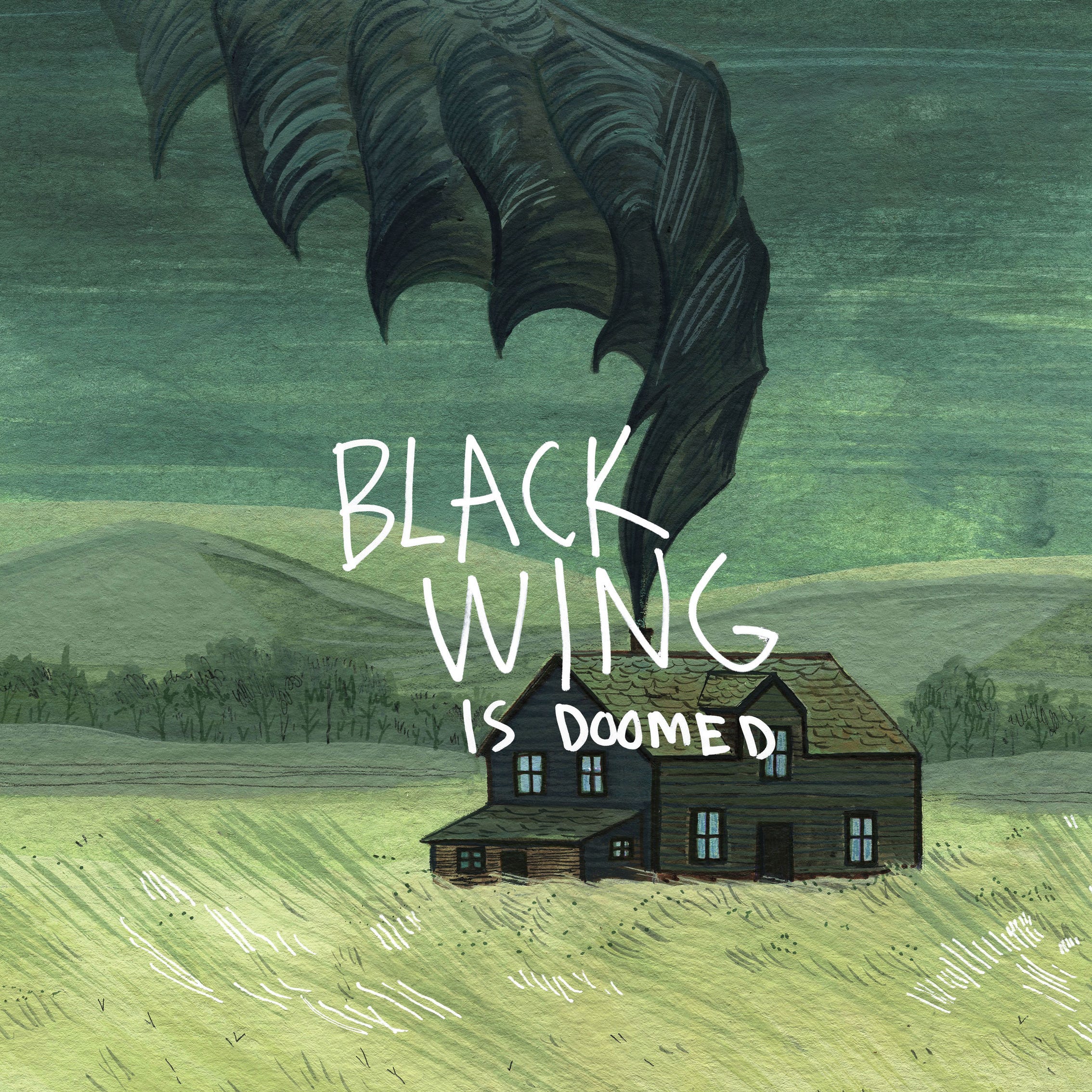 For Dan Barrett, the answer isn’t one you look forward to hearing. On the closing track of his debut album under the name Black Wing, Barrett endures eight persistent minutes of knocking from life’s final visitor. The album cover tells the whole story. The words “Black Wing Is Doomed” in stark white against an isolated cabin billowing smoke. Basic familiarity with the transitive property fills in the blanks.